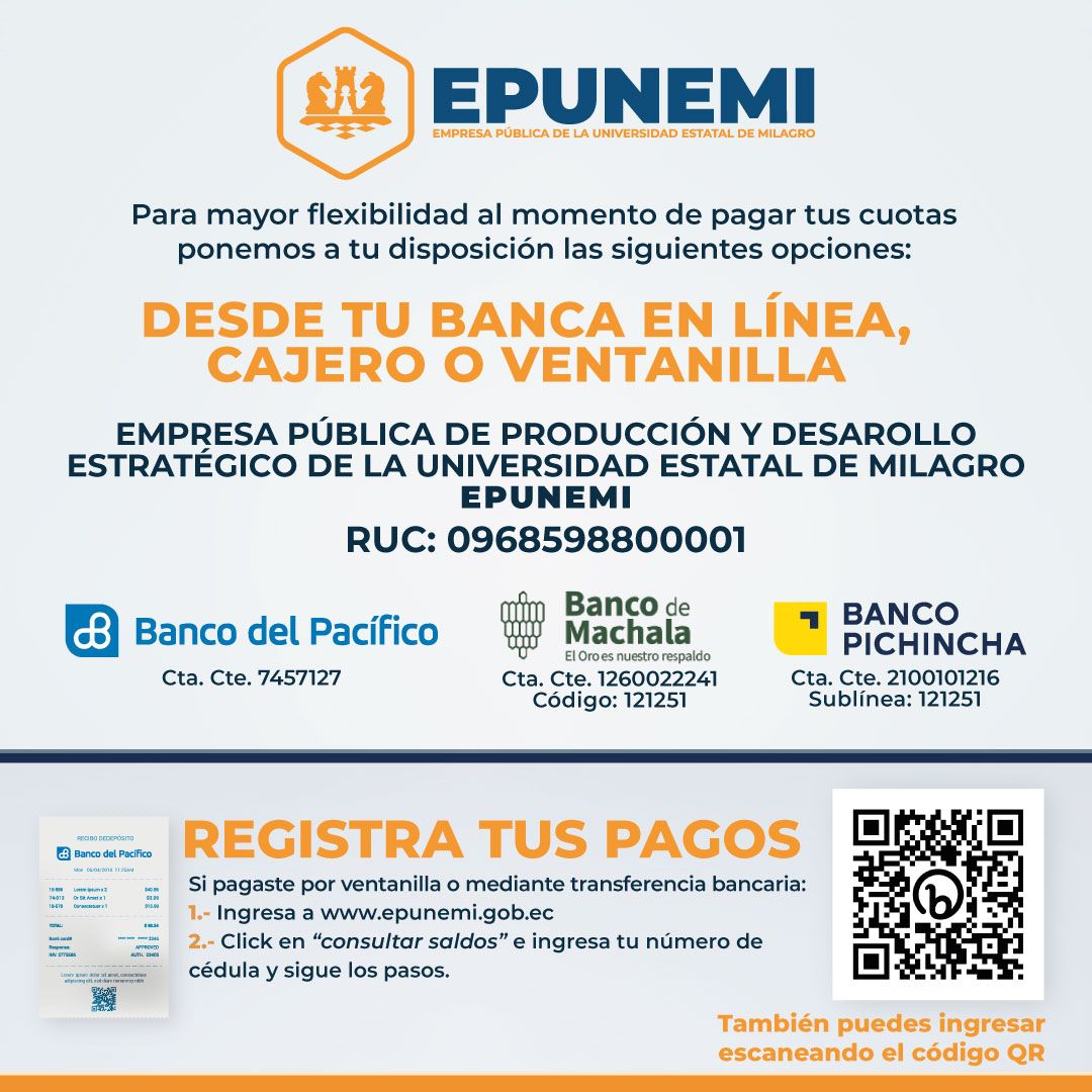 Nota: Profesores y Estudiantes de UNEMI tienen 25% de descuento en las tarifas normales.
